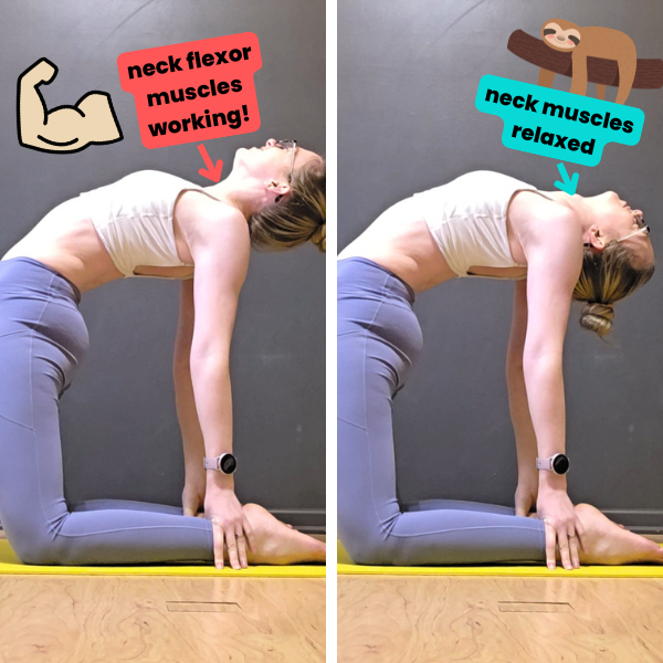 Even though both muscle groups are responsible for opposite actions, they are BOTH important supporters of deepening our neck flexibility in that arched position.