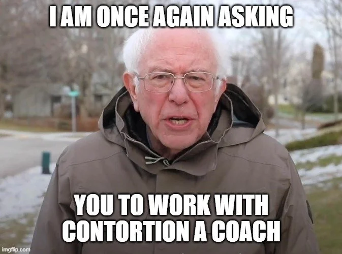 The exercises in this post are generic recommendations and a great starting point for most people, BUT if you’re serious about contortion skills you should work with a coach. And that doesn’t have to be me! (Although I do of course have on-demand workshops on neck flexibility and chest stands, as well as “beginning contortion” class recordings in the Old Class Recording Library, and so plenty of contortion coaching in private lessons). There are many other contortion coaches from all over the world offering online training these days. Two that I’ve trained with personally and would whole-heartedly recommend are Amy Goh (@elastischool) and Tran Finn (@bendyeducator).