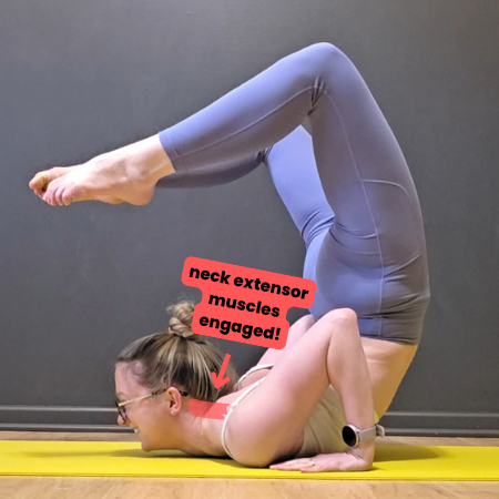 Now it’s time to shift our focus to the muscles on the back of the neck that help pull us into deeper extension, lifting our head off the floor in our chest stands.
